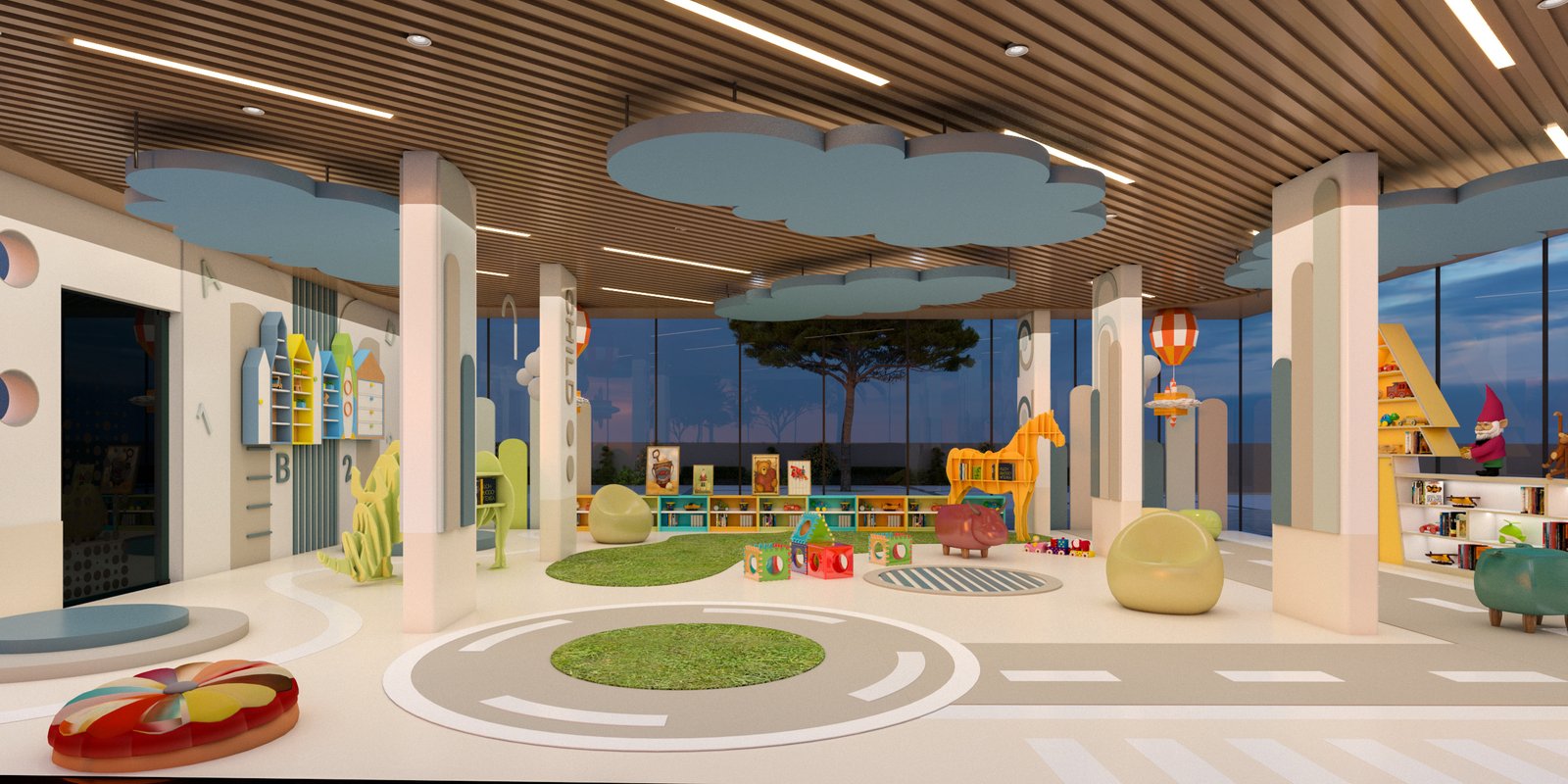 - Ground Floor: Multipurpose Hall with Lawn एवं Kids Play Area