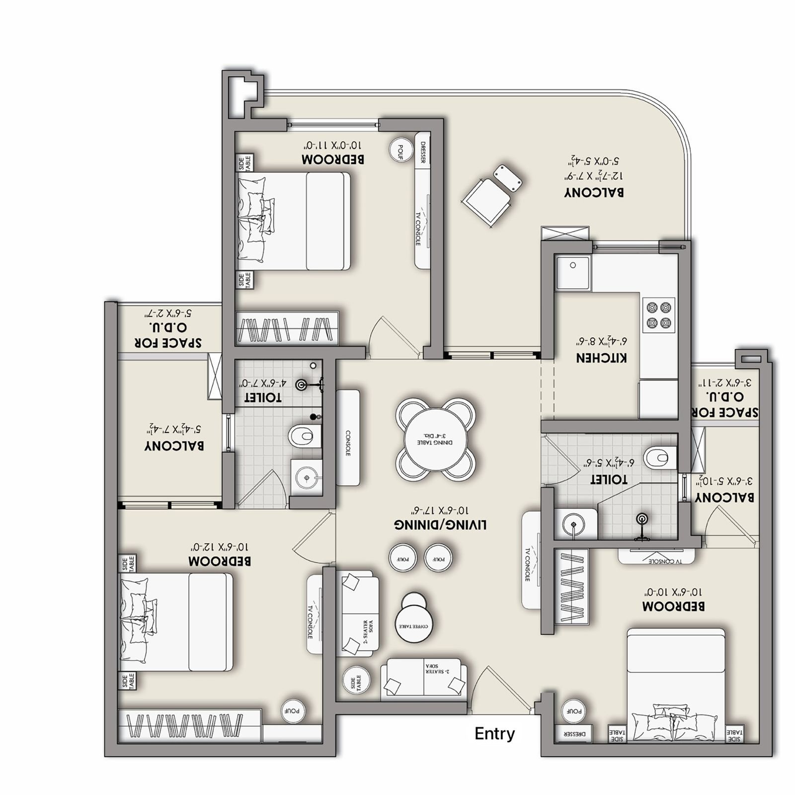| 3 BHK | 1249.47 sq ft | ₹43,00,000* | ₹96,000 |