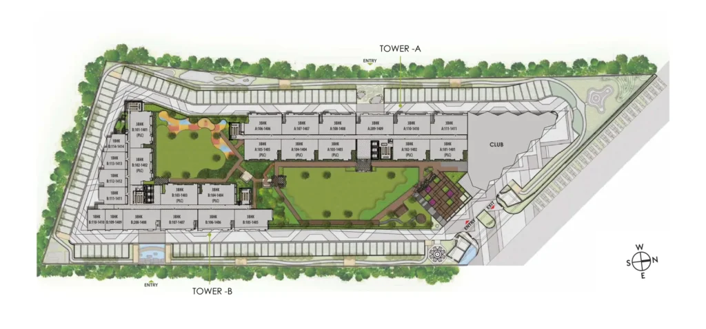 इमारत: इस परियोजना में G+4 की एक अलग क्लब हाउस की इमारत है,और दो G+14 के आवासीय टावर्स हैं जिसमे कुल 348 फ्लैट्स हैं जो विभिन्न आवासीय आवश्यकताओं को पूरा करते हैं।